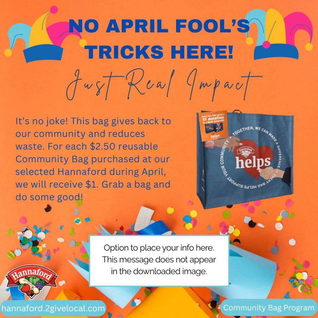 TOOL TIP: If you decide to create your own social media post, remember to include a photo from the Image Bank of the Community Bag so your followers know what to look for at your selected store location!