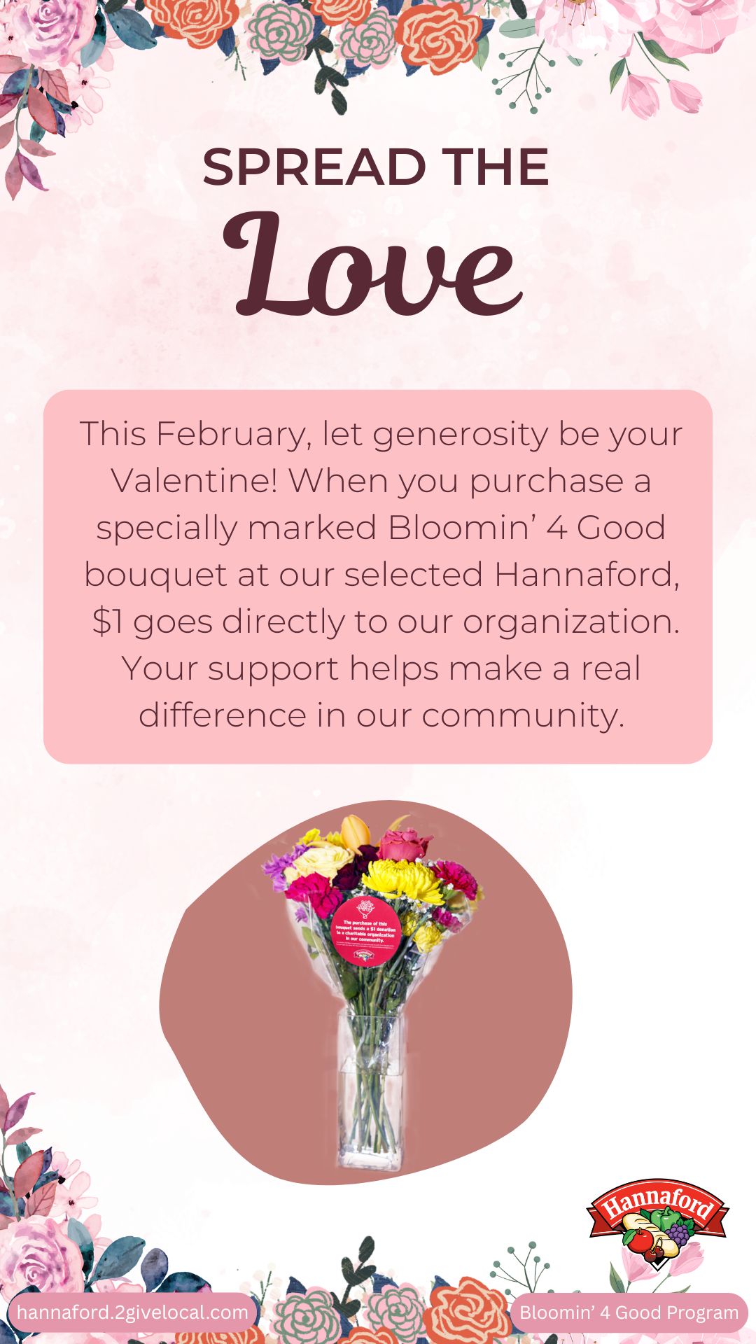 TOOL TIP: If you decide to create your own social media post, remember to include a photo from the Image Bank of the Bloomin’ 4 Good bouquet so your followers know what to look for at your selected store location!