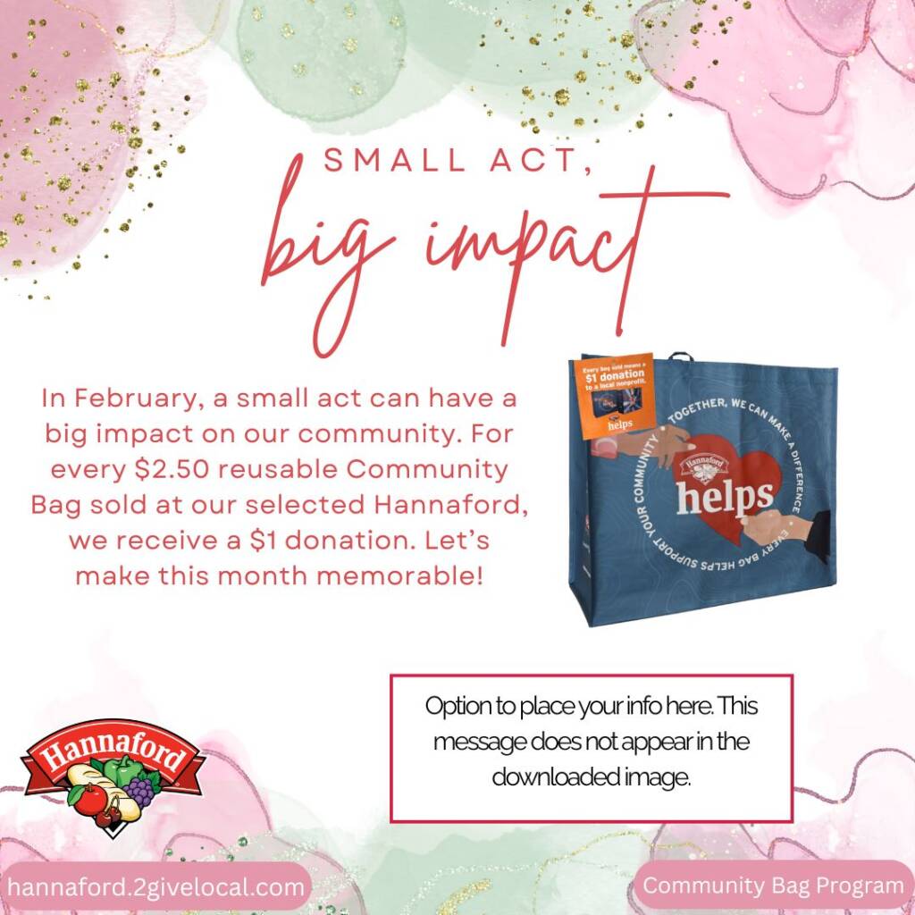 TOOL TIP: If you decide to create your own social media post, remember to include a photo from the Image Bank of the Community Bag so your followers know what to look for at your selected store location!