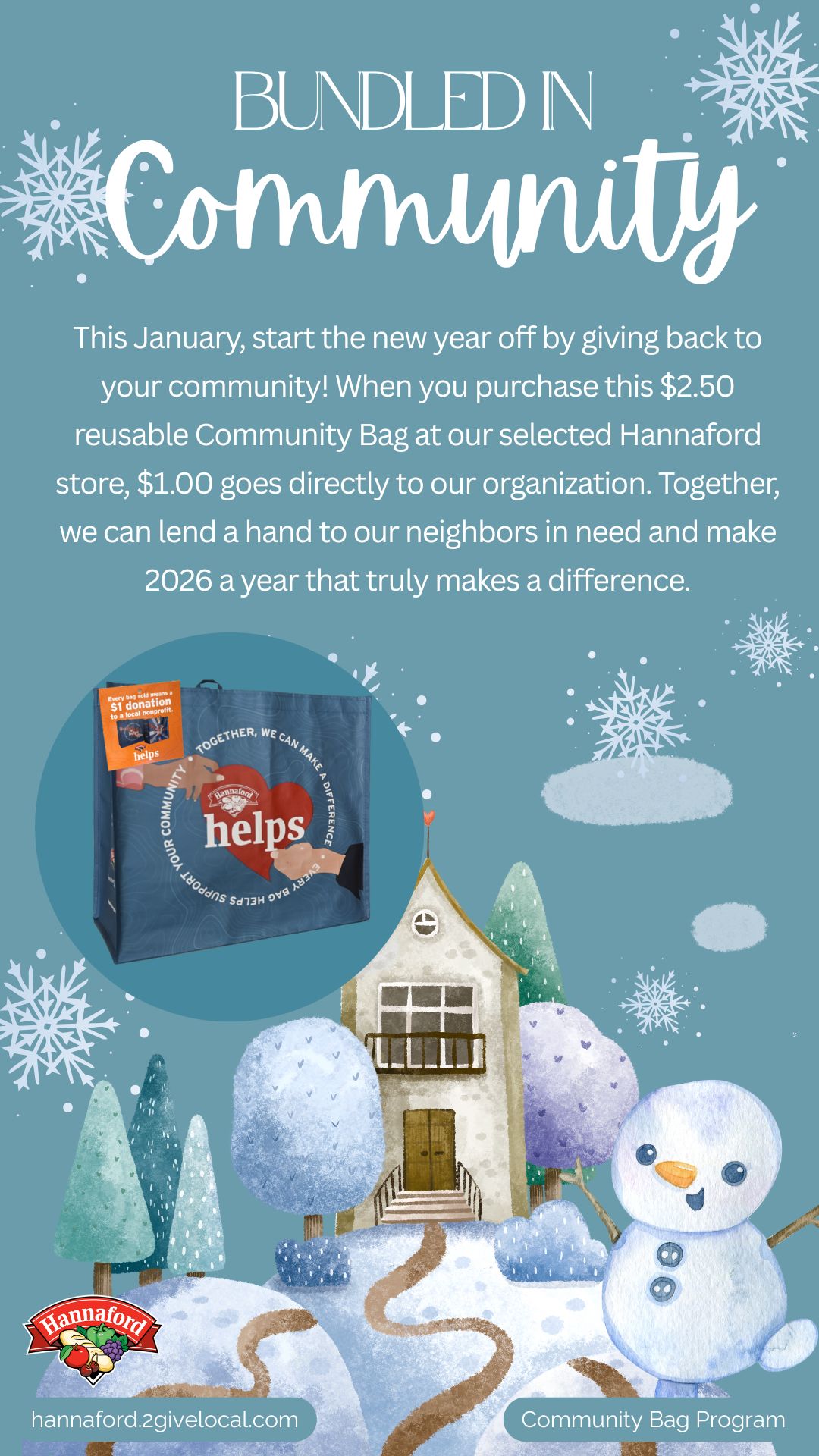 TOOL TIP: If you decide to create your own social media post, remember to include a photo from the Image Bank of the Community Bag so your followers know what to look for at your selected store location!